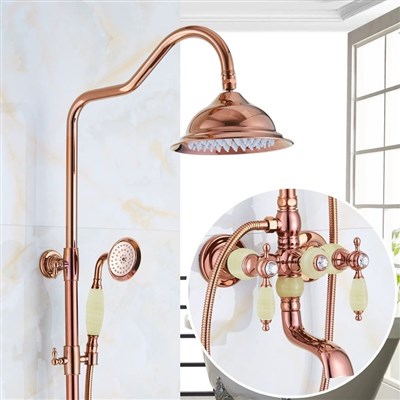 American full Brass natural jade stone rose gold shower head set European style imitation antique retro hot and cold water faucet