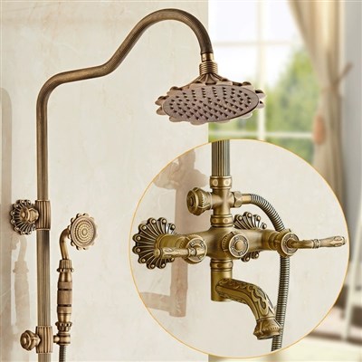 Full Brass European style vintage carved shower set with cold and hot water faucet rotatable and liftable shower mixer valve