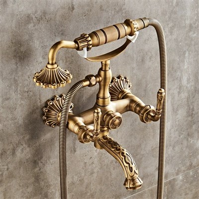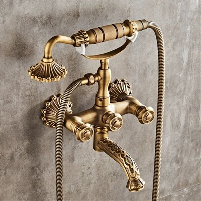 All-Brass carved European vintage simple shower set pure copper hot and cold water faucet bathtub shower hand spray head