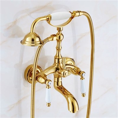 French vintage gold faucet classical concubine bathtub shower Head set all Brass wall-mounted shower cold and hot faucet