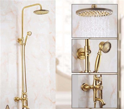 European style brass shower set American style brass craftsman carved wall-mounted rain shower big shower head