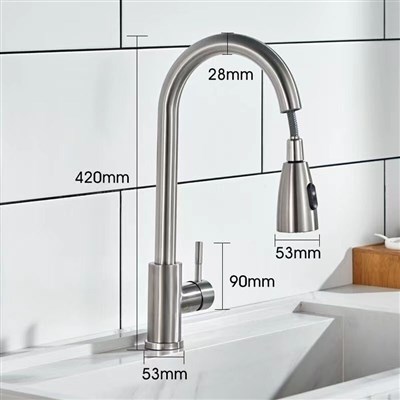 Modern Kitchen Faucets with 2 Modes and Pull Down Sprayer, Stainless Steel Single Handle 360° Swivel Kitchen Sink Faucets