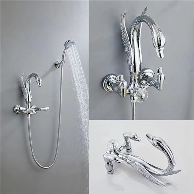 Gold Full Brass swan-shaped art simple shower faucet set home rain hose spray head faucet shower set
