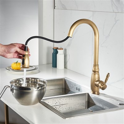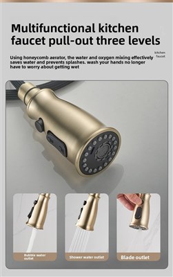 Champagne Gold Kitchen Faucet with Pull Down Sprayer 3 Functions, Single Handle Kitchen Sink Faucet Gold Faucet for Kitchen Sink