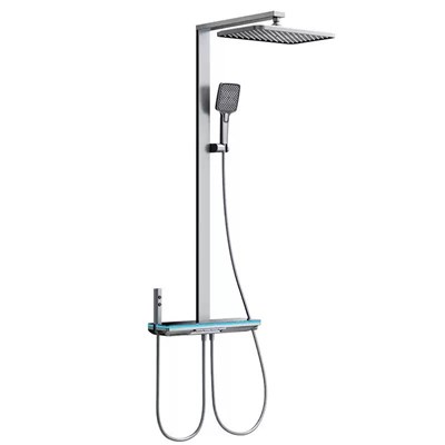 Digital display constant temperature shower head set with piano key full Brass pressure increase square pipe gun gray atmosphere light bath device