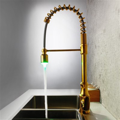 Brass Simple Spring modern Kitchen sink water Best Faucets Tap cold and hot mixing LED rotate pull-out kitchen faucet