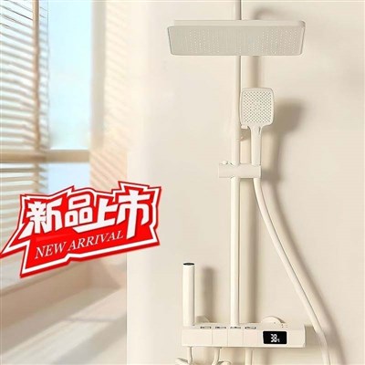Bathroom Shower Head Set Pure Brass Cream Style Constant Temperature Shower Home Bathroom Digital Display Pressure Increase
