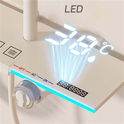 Brass White shower head set with piano key mood light digital display home use constant temperature bath device