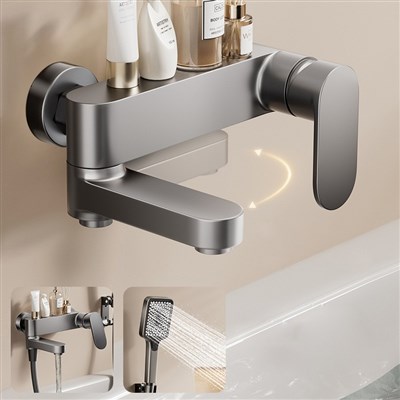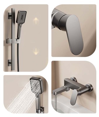 Brass Gun grey shower set for home bathroom simple split-type mixing valve for washroom and bathroom bathtub faucet