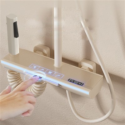 White milk-likeThemostatic atmosphere light shower head set bathroom brass constant temperature pressure display piano key shower device