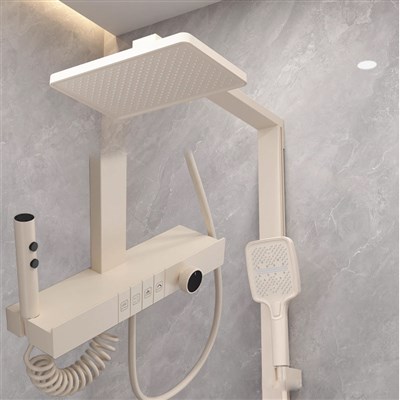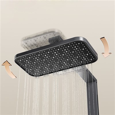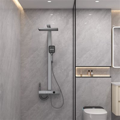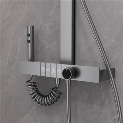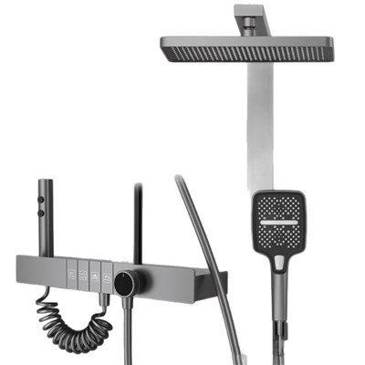 Gun Grey Smart Thermostatic Digital Shower Head Set Full Copper Ambient Light Home Bathroom Rain Shower Head with Pressure Boosting Spray