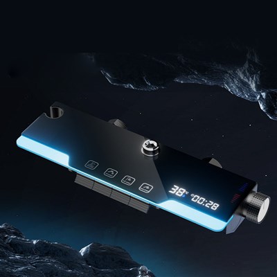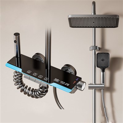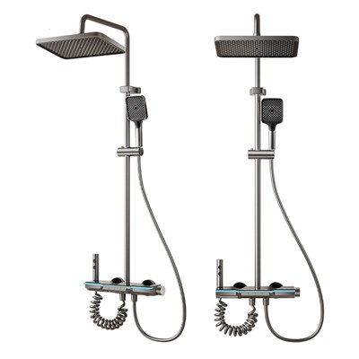 Gun gray atmosphere light shower head set bathroom multi-functional pressure shower head digital display button shower