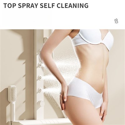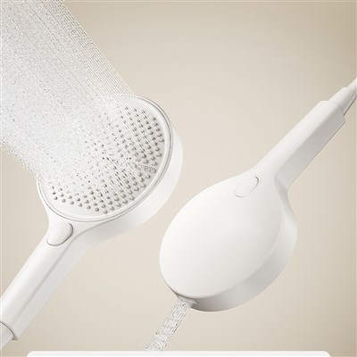 Cream wall-mounted storage rack with square rod shower head set with temperature display bathroom and washroom pressure booster white Tap