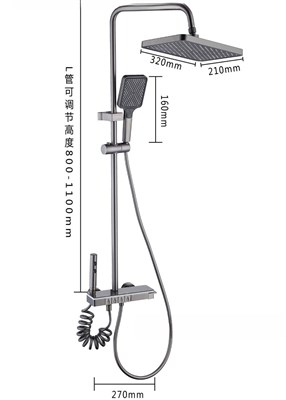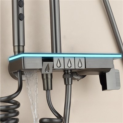 Home use shower head set with Brass smart digital display set of pressure gun grey ash piano key concealed shower device