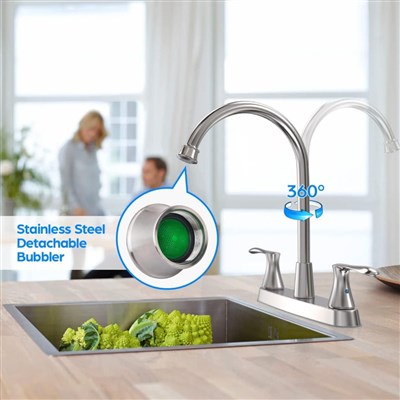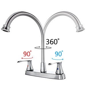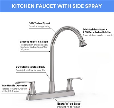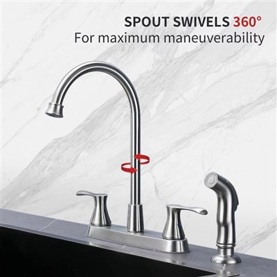 Dual Handle Kitchen Faucet with Side Spray Stainless Steel 360° Rotatable 3 or 4 Hole RV Faucet for Kitchen Sink