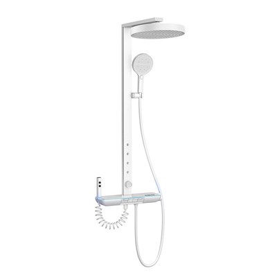 White smart thermostatic shower head set with large panel wall-mounted multi-functional waist spray for home use