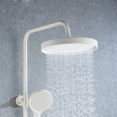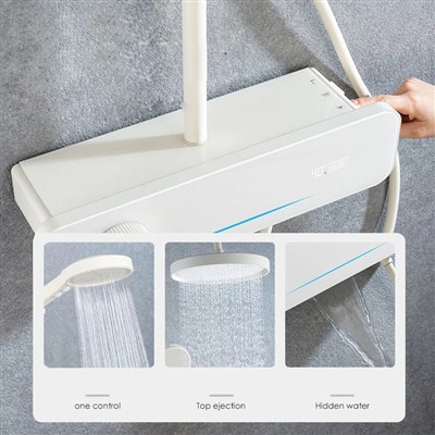 Cream style White high-end storage button digital display pure Brass shower faucet set cold and hot pressure increase