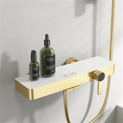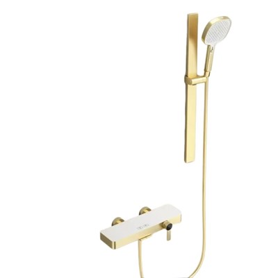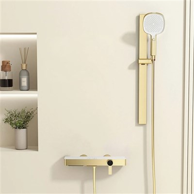Brass gold simple no top shower head set hotel pressure cold and hot button cream style handheld
