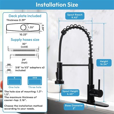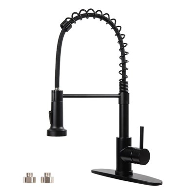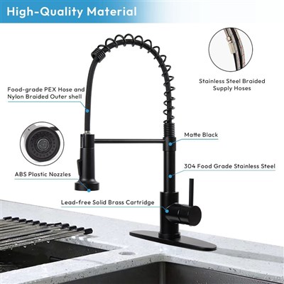 Kitchen Faucets with Pull Down Sprayer Matte Black Dual Mode Setting Single Handle Black Kitchen Sink Faucet with Deck Plate