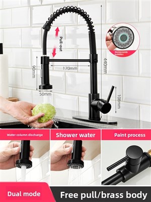 Kitchen Faucet with Pull Down Sprayer Brass 1 Handle Pull Out Spring Sink Faucets 1 Hole Dual Function for Farmhouse Camper