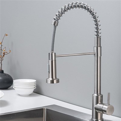 Stainless Steel Kitchen Faucet, Farmhouse Kitchen Faucet with Pull Down Sprayer, Brushed Faucet for Kitchen Sink Single Handle