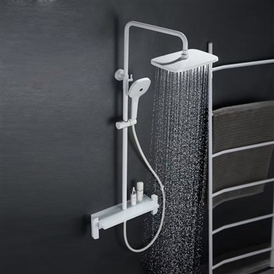 Shower Head Set Full Brass Cold Hot Home Use Black and White Tempered Glass Wall-mounted Waterfall Shower Head