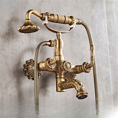 Brass Retro Simple Showerhead Bathroom Wall-Mounted Shower Set Bathtub Faucet Bathroom Handheld Shower head Set
