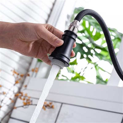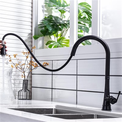 Deck Mounted Kitchen Faucet modern Single Handle Matte Black Kitchen Sink Faucet Pull-down Sprayer With Ceramic Valve Core modern Style Kitchen Fauce For Kitchen single Handle Kitchen Faucet