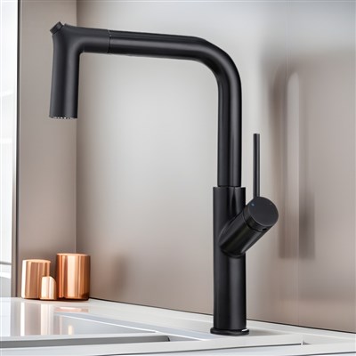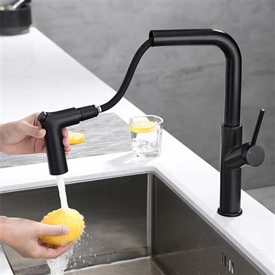 Modern Minimalism Design Brass Single Handle Pull Down Sink Kitchen Mixer Faucet Luxury Dual Functions with Switch Button