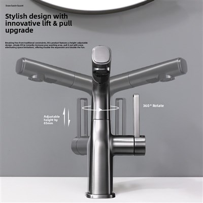 Modern Single-Handle Brass 360° Swivel Kitchen Sink Faucet with Dual Functions Pull Out Sprayer Ceramic Valve Core Tap