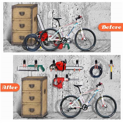 WIDELY USED & MULTIFUNCTION USAGE -- Compact sizing and clean design garage organization systems. Suitable for organizing all kinds of tools. Such as shovels, push brooms, bikes, bags, towels, robes, umbrellas, rain boots, etc. A nice choice for storing and holding your tools in home, garage, apartment, utility room, basement or shed.