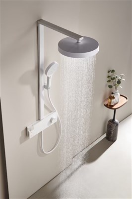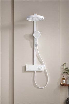 High-Quality Bathroom Shower Thermostatic Faucet Set in White with Premium Ambient Lighting and Multiple Functions, Wall-Mounted